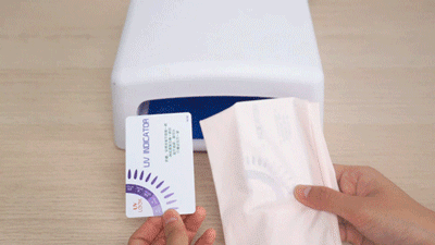 被冰袖遮蓋的測(cè)試卡呈現(xiàn)淺紫色,而沒(méi)有任何防護(hù)的測(cè)試卡從白色變成紫色,表明已經(jīng)被曬黑了。
