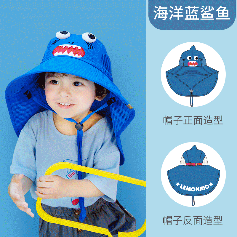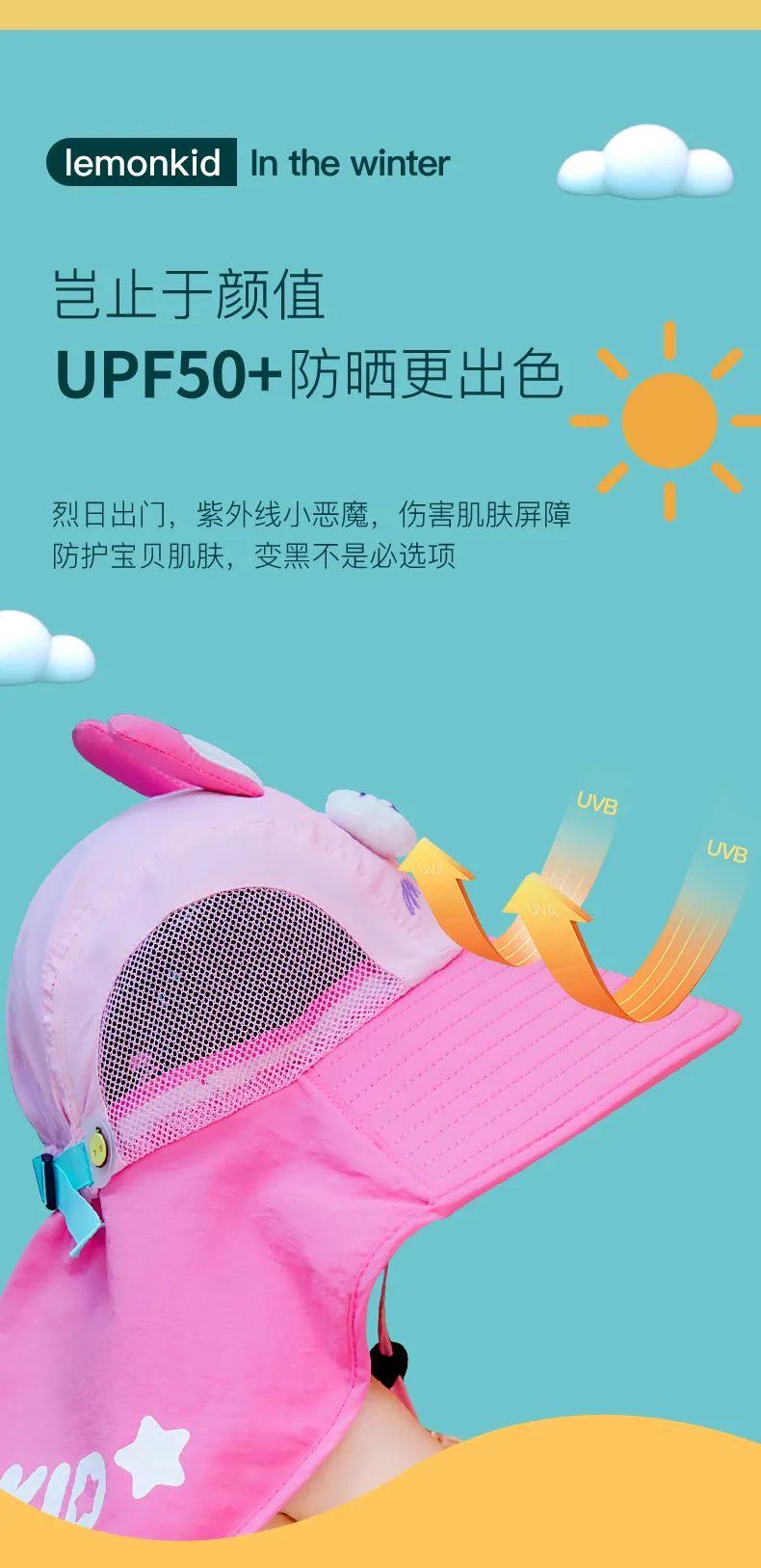 Lemonkid檸檬寶寶兒童防曬帽防曬面積>270°,小耳朵也能被呵護(hù)