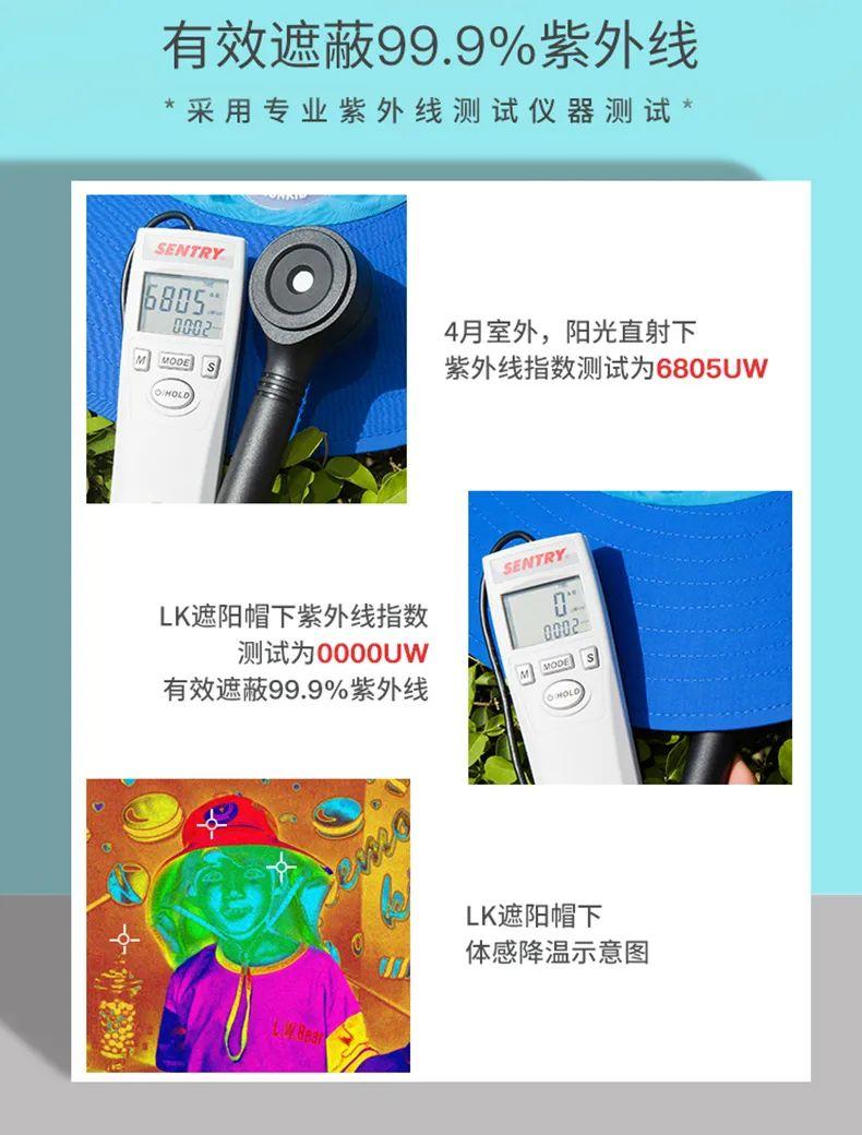 它家的防曬帽做的極為專業(yè),用的都是超強(qiáng)防曬的面料,防曬級(jí)別大于UPF50+,阻隔紫外線的能力高達(dá)99.9%,光是材質(zhì)這塊,就比普通的防曬帽要好不少