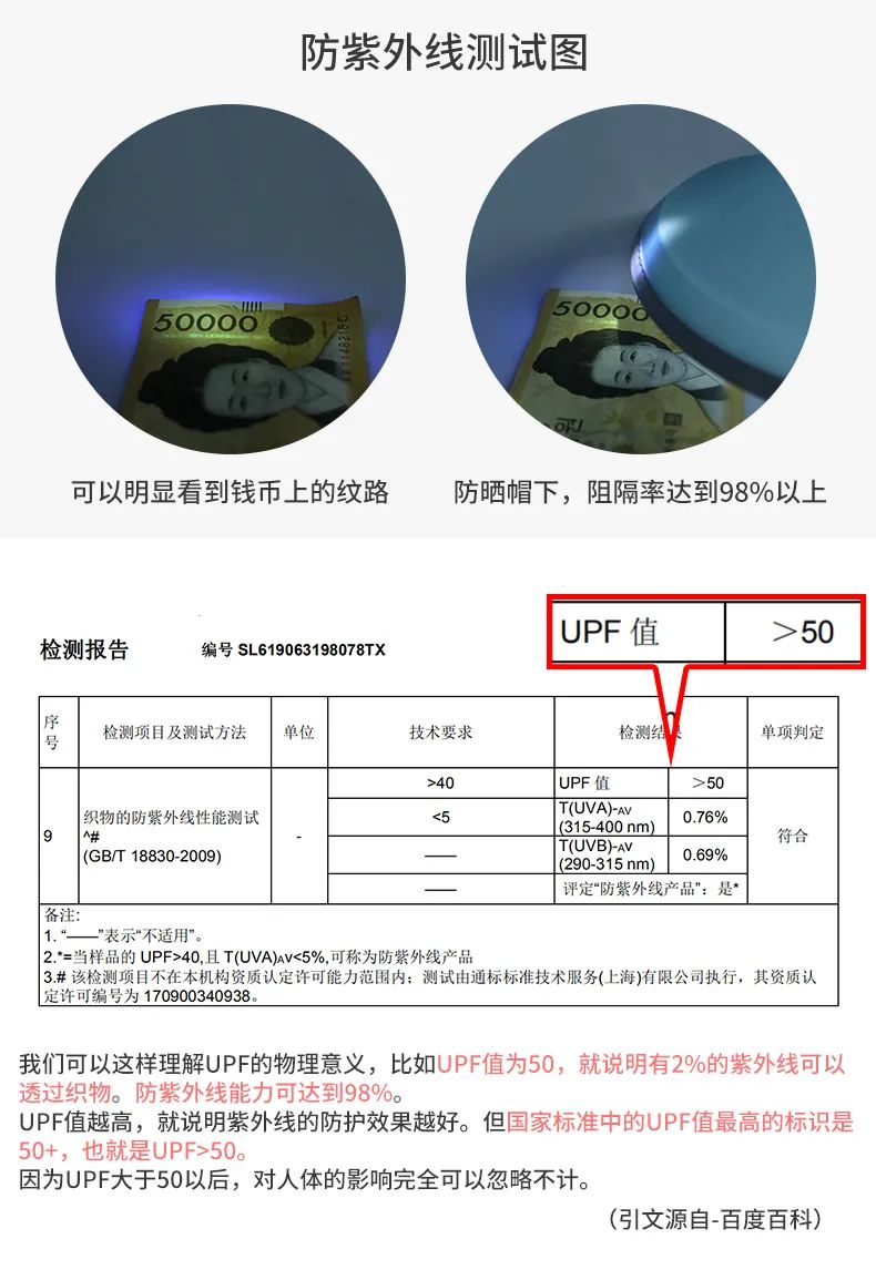 豈止于顏值,UPF50+A類面料,有防曬,有遮蔽紫外線