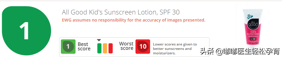 這款防曬在EWG美國環(huán)境工作組推薦的一款兒童防曬霜,綜合評分為一分(分數(shù)越低越好)。