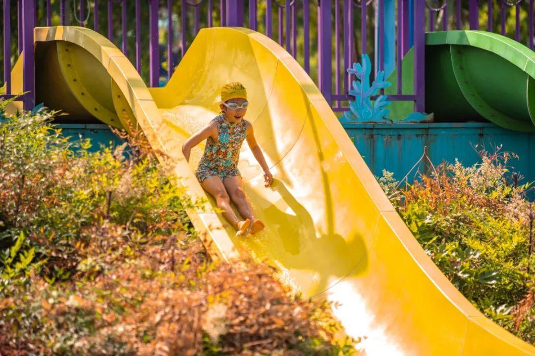 垂直挑戰(zhàn)、彩虹滑道、時光隧道等是速度愛好者的天堂,從高處急速下落感受水流沖擊,怎一個爽字了得。