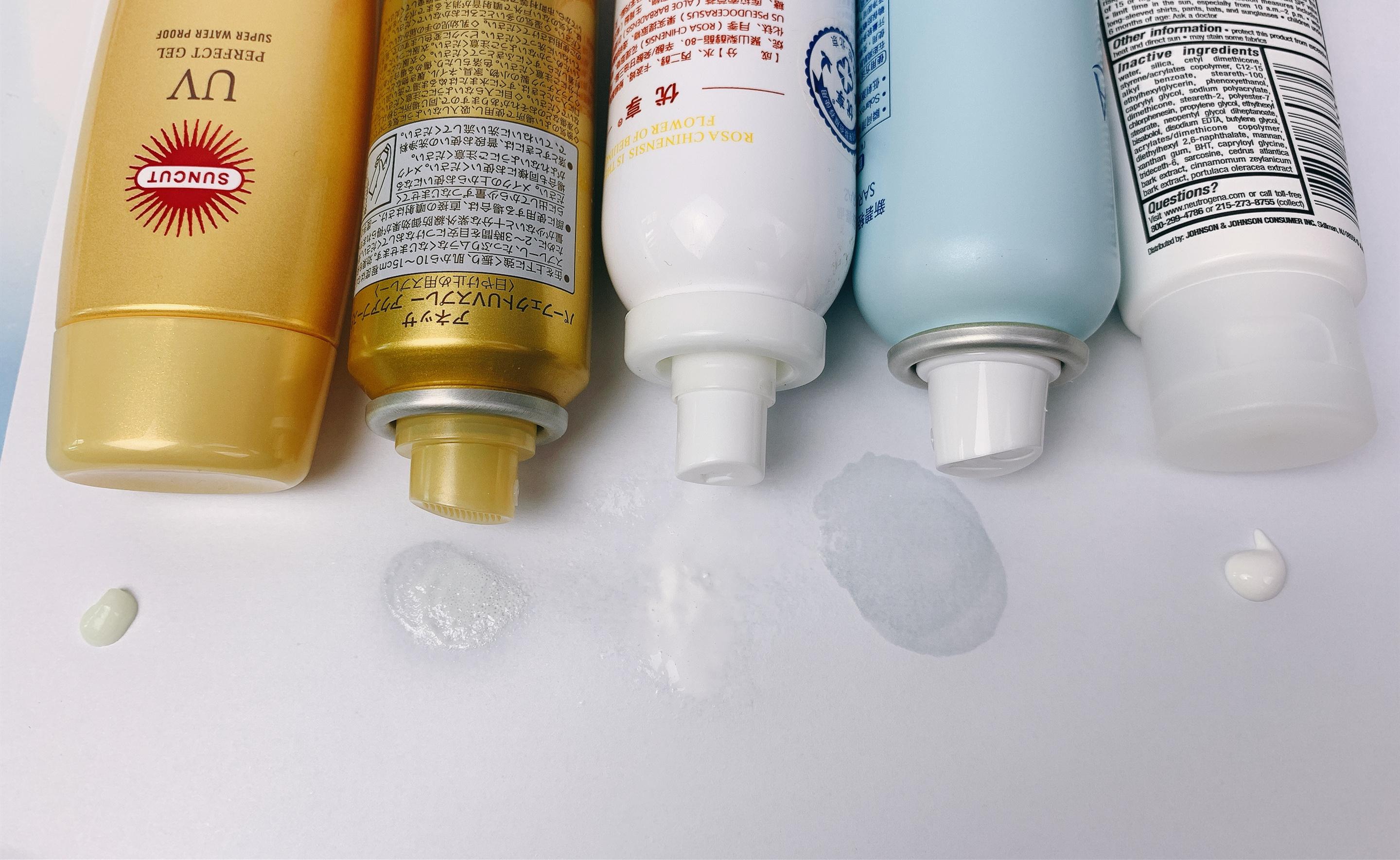 第二組為(左至右):高絲、安熱沙(噴)、優(yōu)享、曼秀雷敦、露得清。