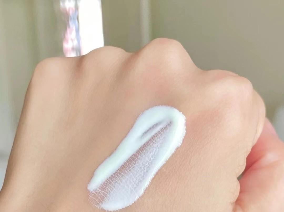 這支防曬霜配方經(jīng)過調(diào)色處理,解決了物理防曬假白的問題。膚色凝乳質(zhì)地,上臉?biāo)疂櫜徽衬仯瑤缀鯖]有潤色果。