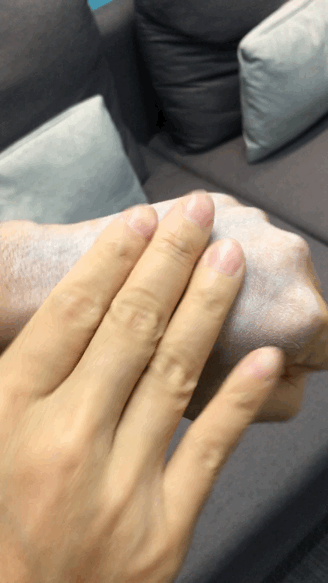 剛開(kāi)始涂抹的時(shí)候,避免不了泛白的情況,但很快就變成自然的微白,不會(huì)像“刮大白”一樣假白。涂抹均勻之后,質(zhì)感很細(xì)膩,膚色看起來(lái)還很水嫩。