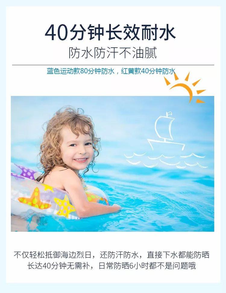 Trukid紅色日??詈忘S色抗敏款的防水時(shí)間都是40分鐘,所以在碰水出汗的情況下,40分鐘要記得給孩子補(bǔ)涂一次,如果沒(méi)有出汗碰水就不需要那么頻繁哦~