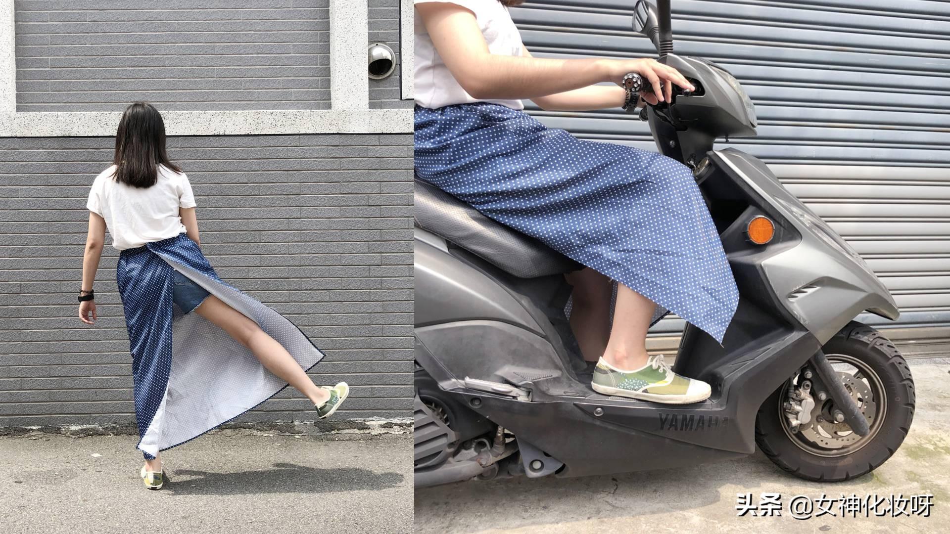 我手邊這款防曬裙長(zhǎng)度,站著的時(shí)候約落在我的腳踝,坐上機(jī)車(chē)后長(zhǎng)度直接縮到小腿肚……穿短褲短裙的時(shí)候,背后的大開(kāi)口還會(huì)因?yàn)樽鴫|太熱被燙到。