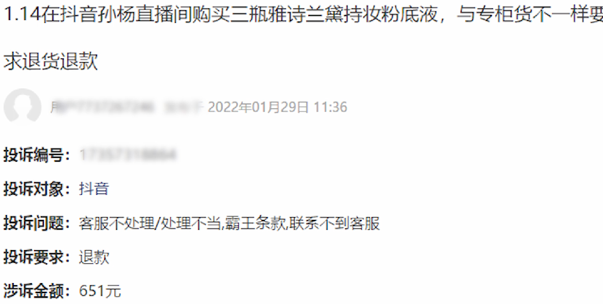 前不久有網(wǎng)友爆料,說(shuō)她在孫楊直播間買到的某品牌防曬霜是假的,找售后退貨還退不了