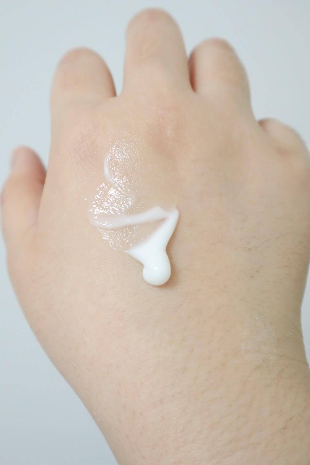 乳液的質(zhì)地像酸奶一樣,略顯厚重,但其實(shí)不算黏膩,涂在肌膚上很好推開(kāi)。