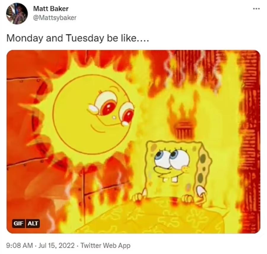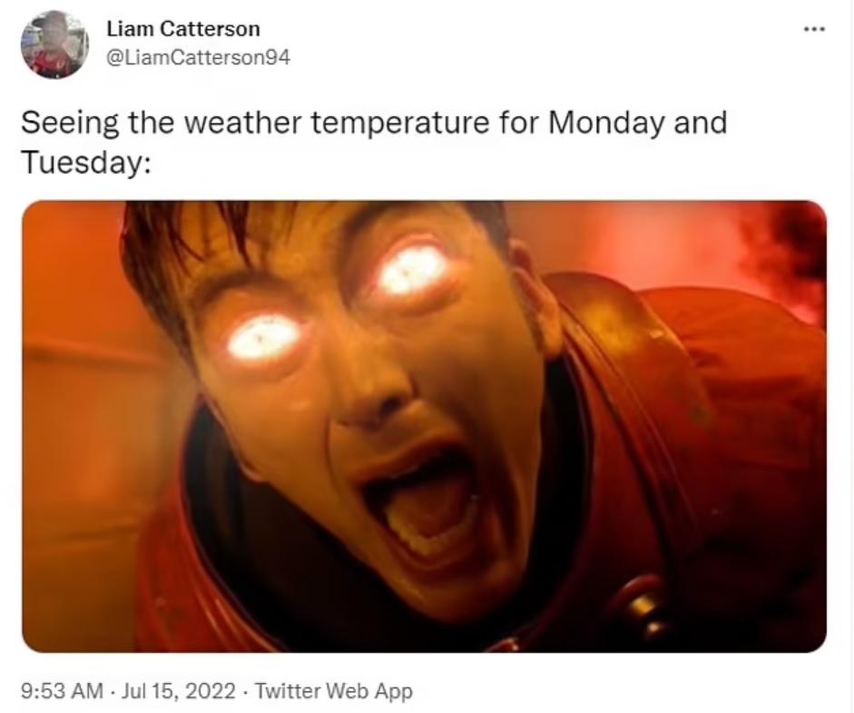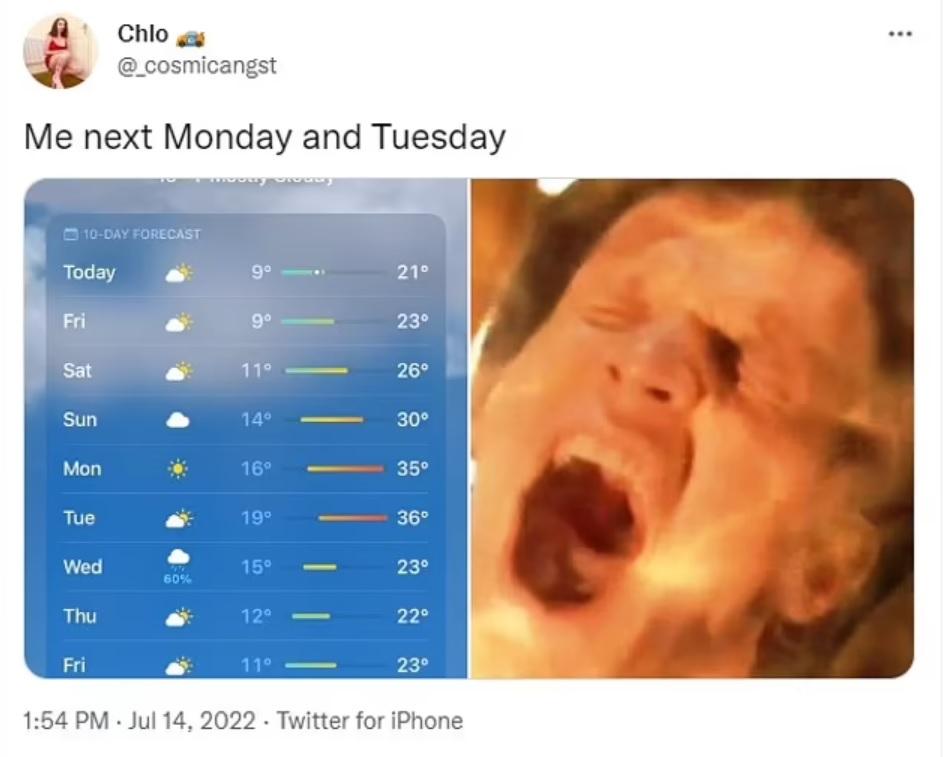 “BBC預(yù)報大伊斯頓將在周一、周二達(dá)到38度。我想到時候我一整天都躺在冰淇淋柜里?!?/p>
