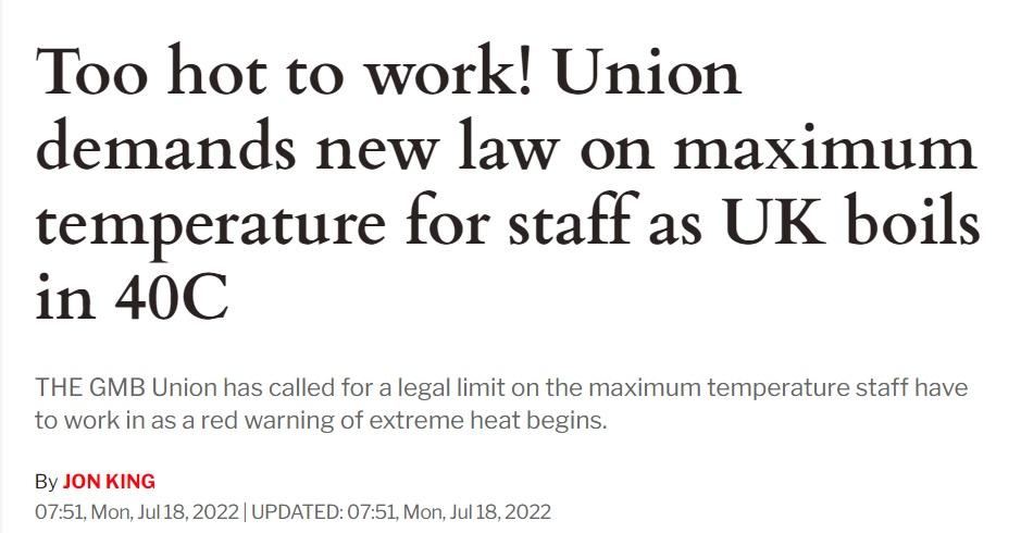 有些議員對The GMB表示支持,認(rèn)為大部分工作的高氣溫應(yīng)該定在30度,從事艱苦工作的人定在27度,一旦超過就應(yīng)該回家休息。想法很好,可惜政府還沒回應(yīng)。