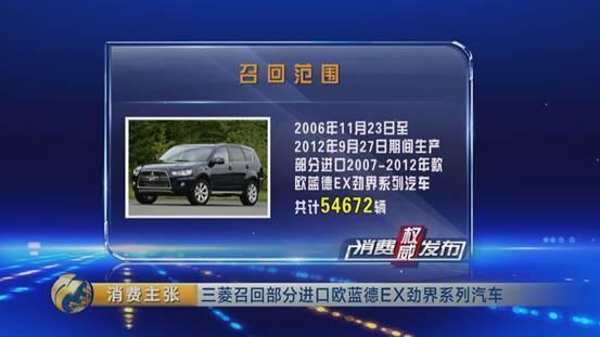 日前,三菱汽車銷售(中國)有限公司向質(zhì)檢總局備案了召回計(jì)劃,將自2017年9月11日起,召回部分進(jìn)口歐藍(lán)德EX勁界系列汽車共54672輛。
