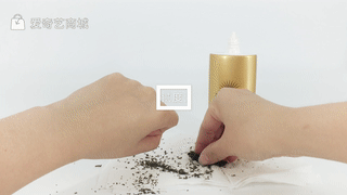 將茶葉沫均勻撒在涂了防曬霜的手背上,旋轉(zhuǎn)手背,只有極少粘黏,可見其清爽不油膩,適合夏天。