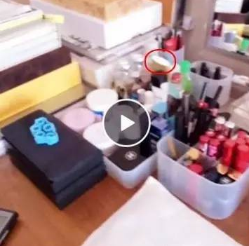 再看看天后王菲這熟悉不過的梳妝臺(tái),雖然圖片模糊,但還是能捕捉到安耐曬的身影。