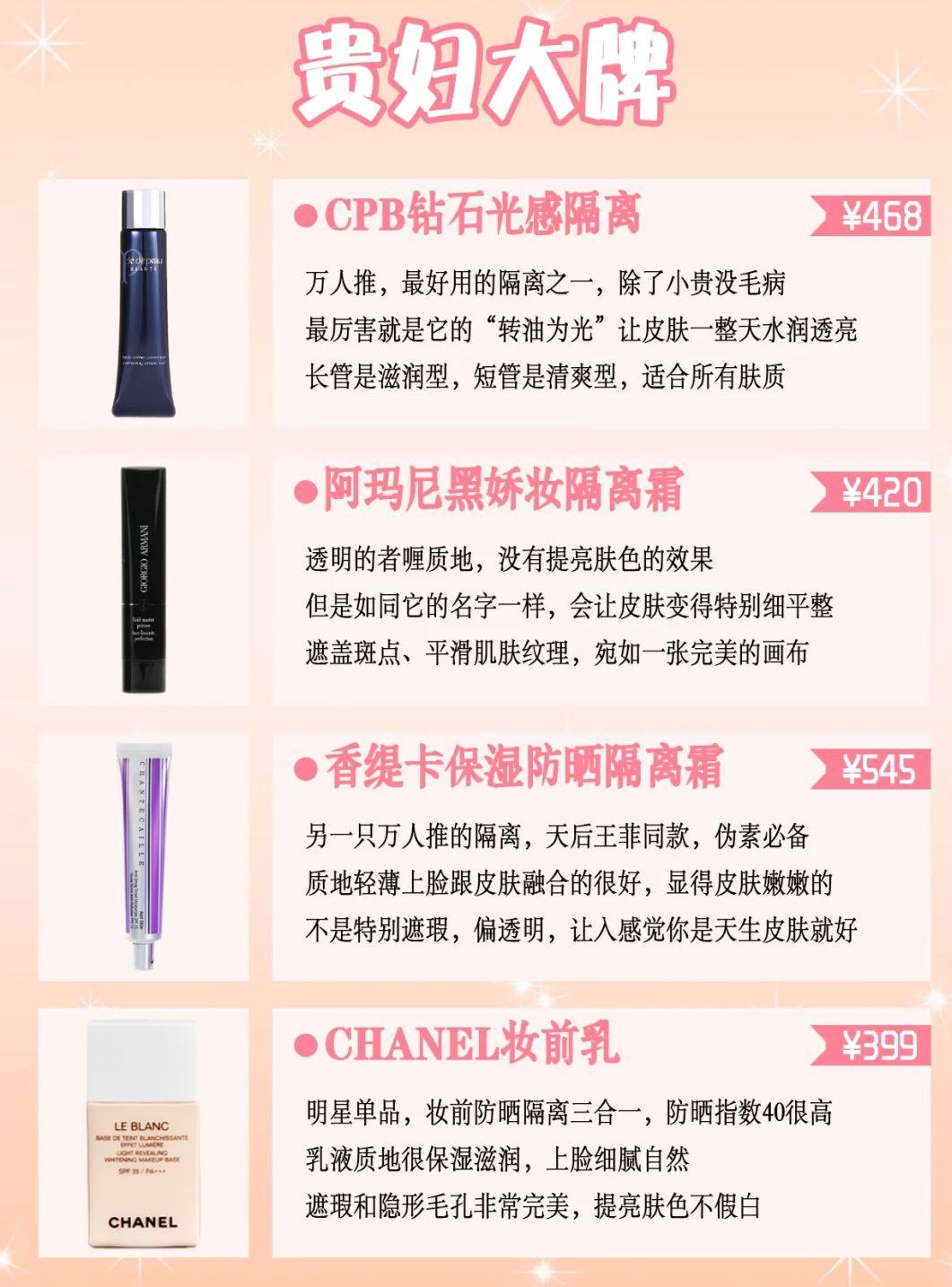 前沿拓展:防曬霜妝前乳品牌