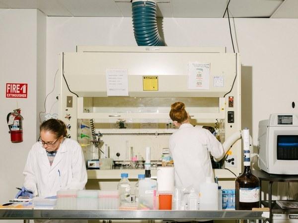 分析師丹尼斯·威爾金斯(Denise Wilkins)(左)和技術(shù)員妮可·派克(Nicole Pike)準(zhǔn)備樣品進(jìn)行分析。