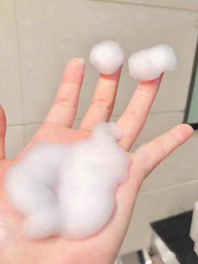 這款泡沫也是的細(xì)膩,聞起來有股中草藥的味道,很是舒心,清洗也很方便,沒有任何的假滑感。