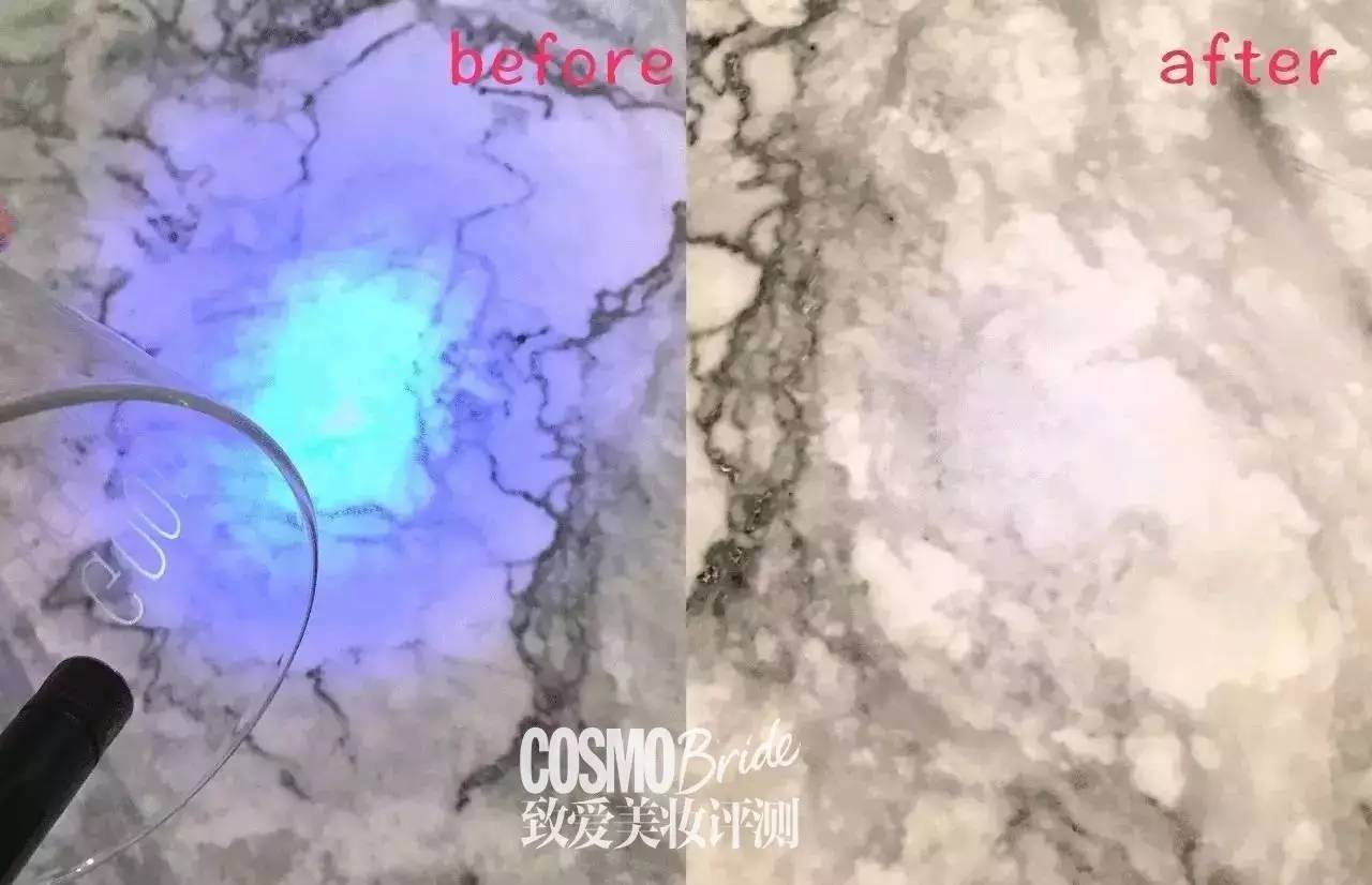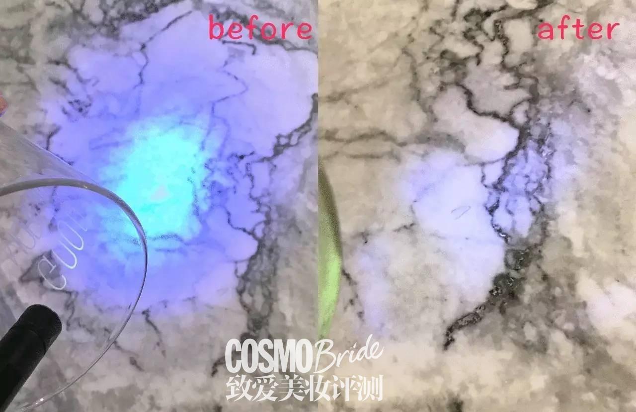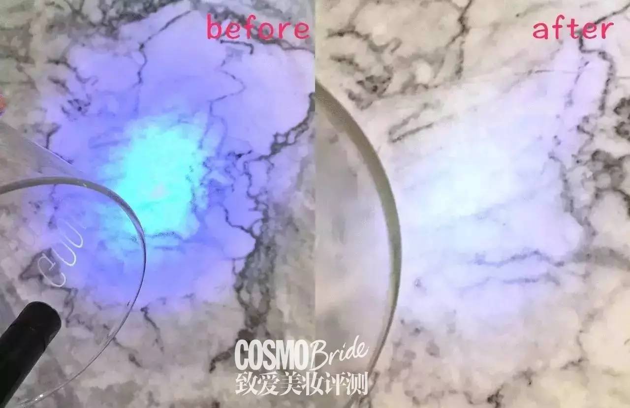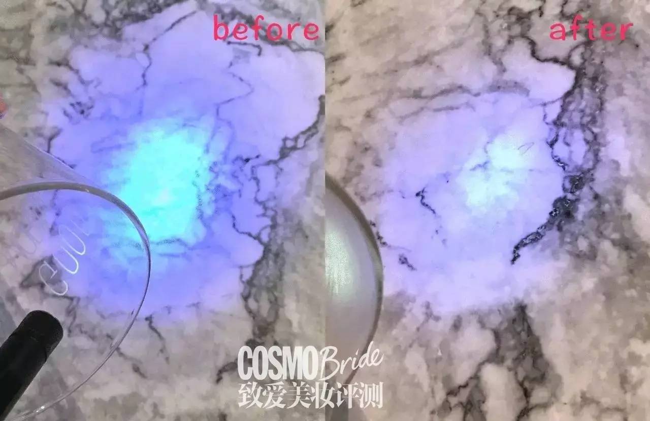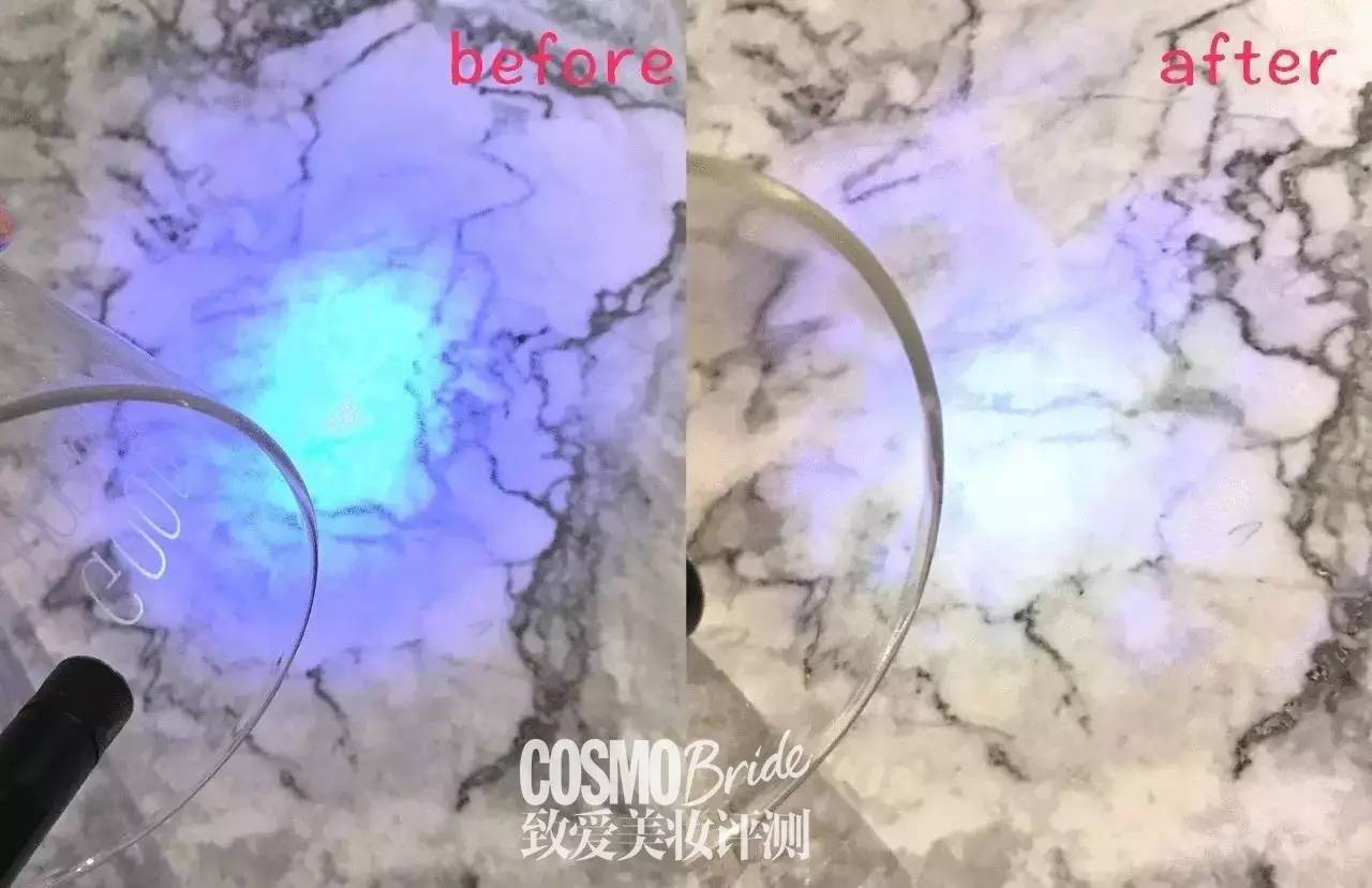 在玻璃上涂防曬后用紫外線燈照射發(fā)現(xiàn),90%的紫外線幾乎都被有阻隔了!防曬果贊贊的!