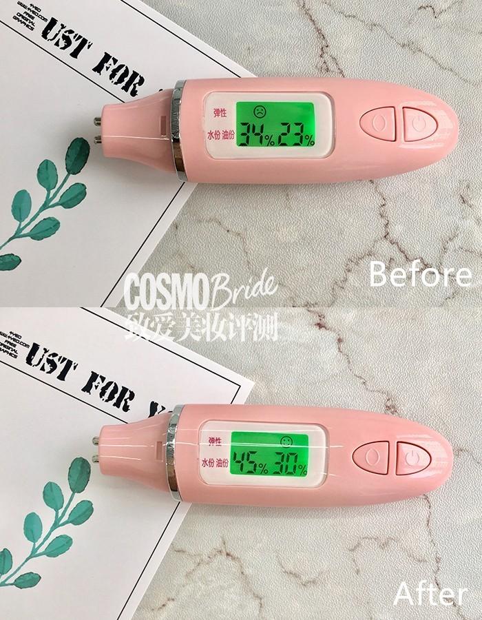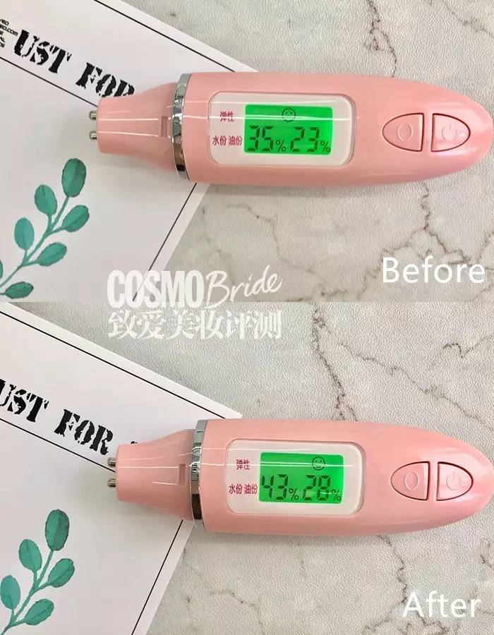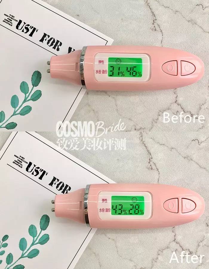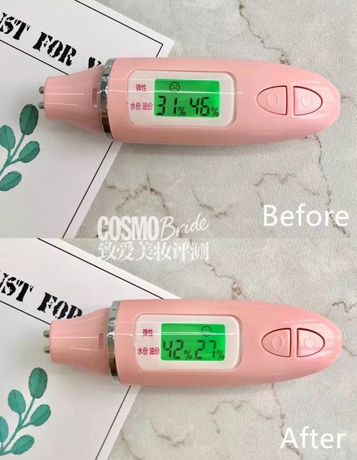 使用前水分值為31%,使用后肌膚水分值為45%,有不錯(cuò)的滋潤果,使用后不會(huì)泛干,長時(shí)間后保濕力度較一般。