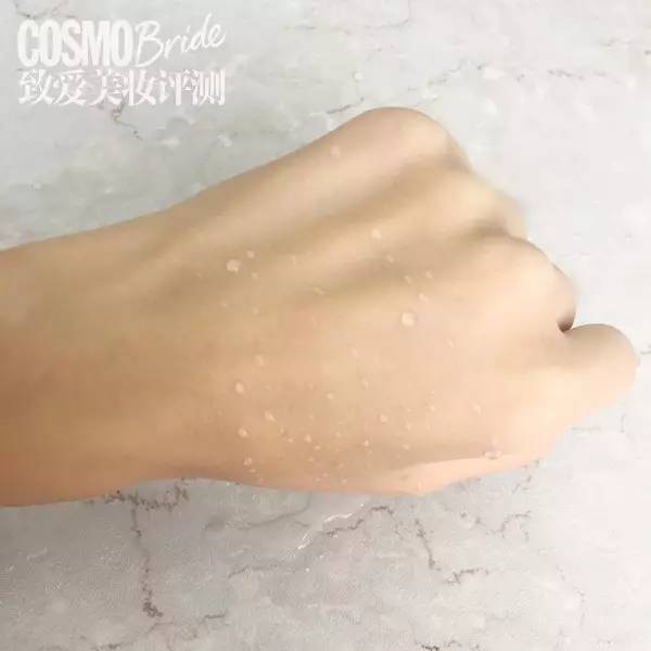 防曬修顏霜成膜速度很快,能在手背形成一顆一顆的水珠,作為適合在戶外活動(dòng)時(shí)使用的防曬霜,它是防水級(jí)的。