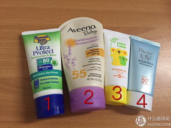 1香蕉船2.AVEEON(強生)3.日本明色嬰兒防蚊防曬霜4.碧柔水凝防曬霜