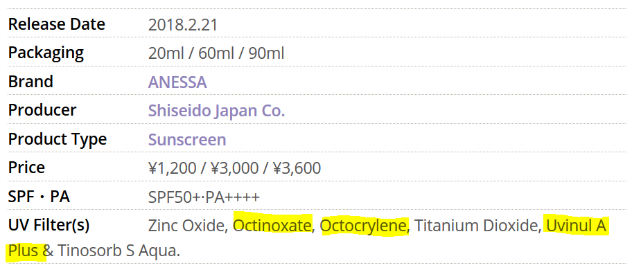 也許這些陌生的化學(xué)名詞看起來和我們沒什么直接的關(guān)系,但它們其實就潛伏在我們身邊。比如防曬爆款“安耐曬小金瓶”,里面的成分就包括甲氧基肉桂酸辛酯(octinoxate)。