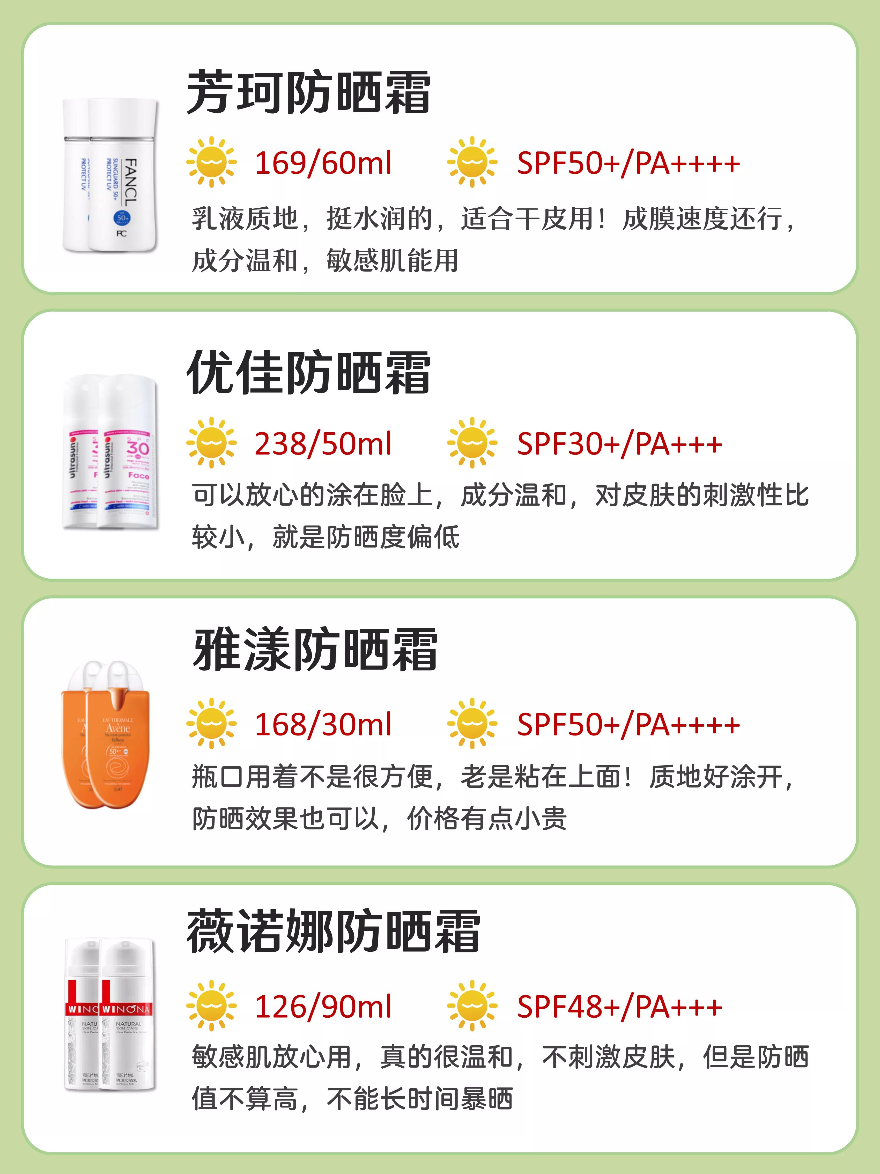 10、蘇菲娜藍蕾絲防曬霜9、近江兄弟小熊防曬防水防汗紅色防曬霜8、fancl透亮防曬隔離露7、珂潤潤浸保濕防曬凝露6、Fancl無添加物理防曬隔離霜5、Badger天然物理嬰兒防曬霜(洋甘菊金盞花)4、碧柔水活防曬倍護水凝露3、薇諾娜清透防曬乳2、安耐曬小金瓶1、怡勞強向邊若送顧思丁多維光護沁融水感防曬霜【拓展資料】