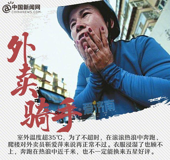 室外溫度超35℃,為了不超時,在滾滾熱浪中奔跑、爬樓對外賣員靳愛萍來說再正常不過。衣服浸濕了也顧不上,奔跑在熱浪中近千米,也不一定能換來五星好評。