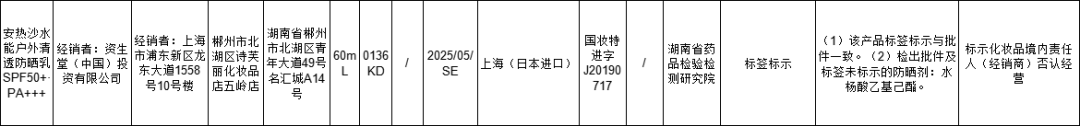 問題項(xiàng)目:檢出批件及標(biāo)簽未標(biāo)示的防曬劑:水楊酸乙基己酯
