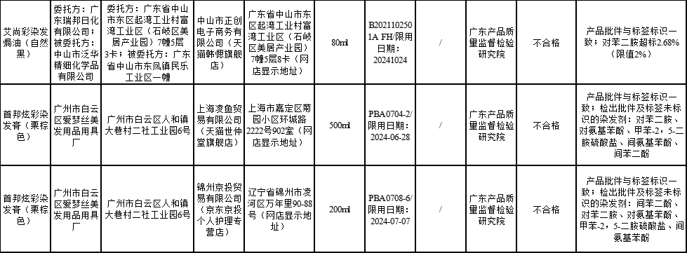 2022年2月17日 ,廣東省藥品監(jiān)督管理局發(fā)布了《關(guān)于化妝品抽樣檢驗(yàn)信息的通告(2022年第1期)》,通報(bào)這三款染發(fā)膏含有對苯二胺。