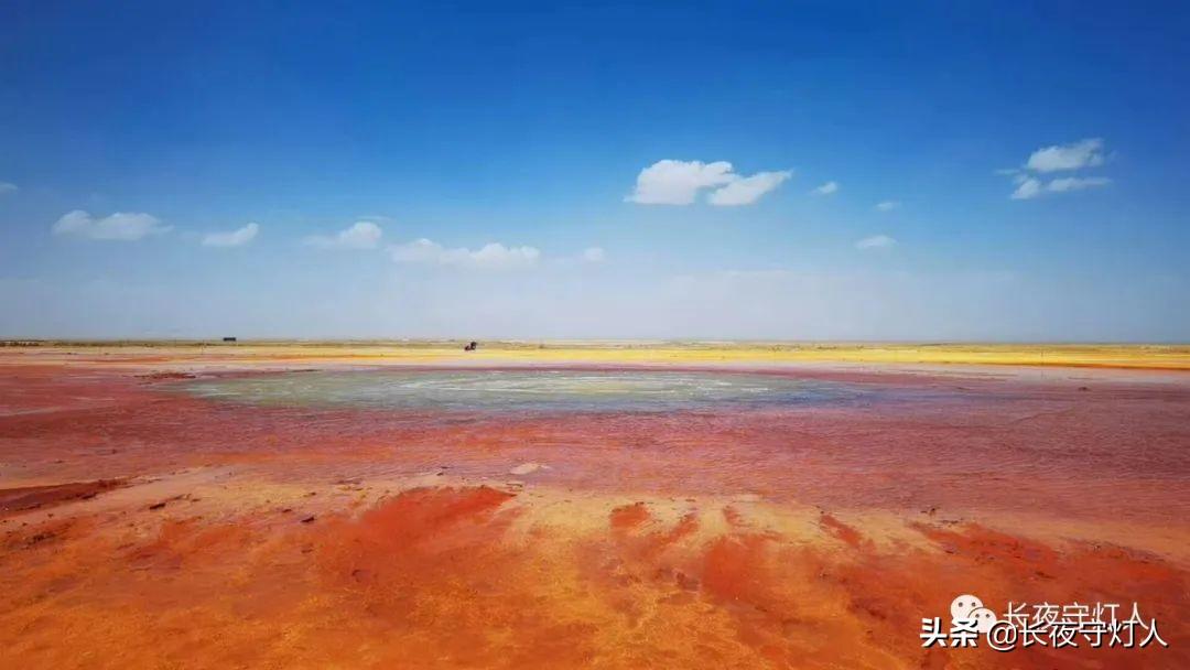 艾肯泉也就是惡魔之眼,這可能是此行大的網(wǎng)紅打卡基地,據(jù)說當(dāng)?shù)刈雎糜蔚娜硕己捱@個景點,不是因為泉不好,而是通往泉眼的四十公里土路實在難開。“艾肯”是蒙古語可怕的意思,艾肯泉又稱惡魔之眼,一方面是因為從高處看,這就像一只眼睛,另一方面是因為泉水含硫量過高,所到之處寸草不生。