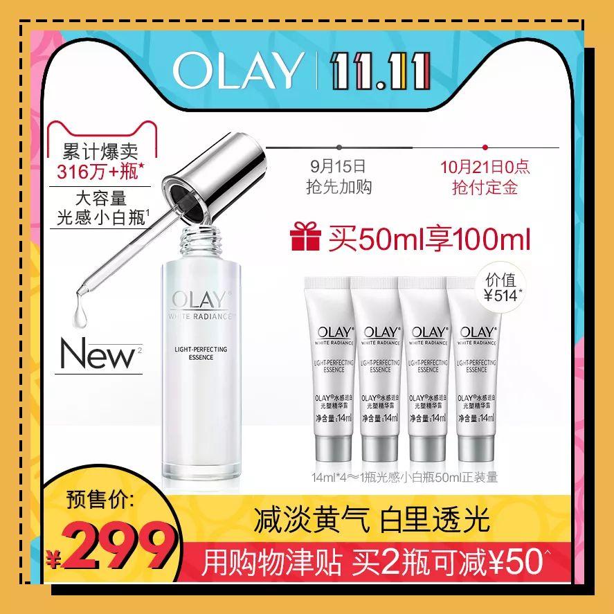 有了歐萊雅,怎么能忘掉玉蘭油?Olay每年貧民窟女孩必?fù)尩拿腊拙A——光感小白瓶。今年依舊靠搶,前4萬(wàn)預(yù)售減30,前5萬(wàn)尾款加贈(zèng)14ml小樣。