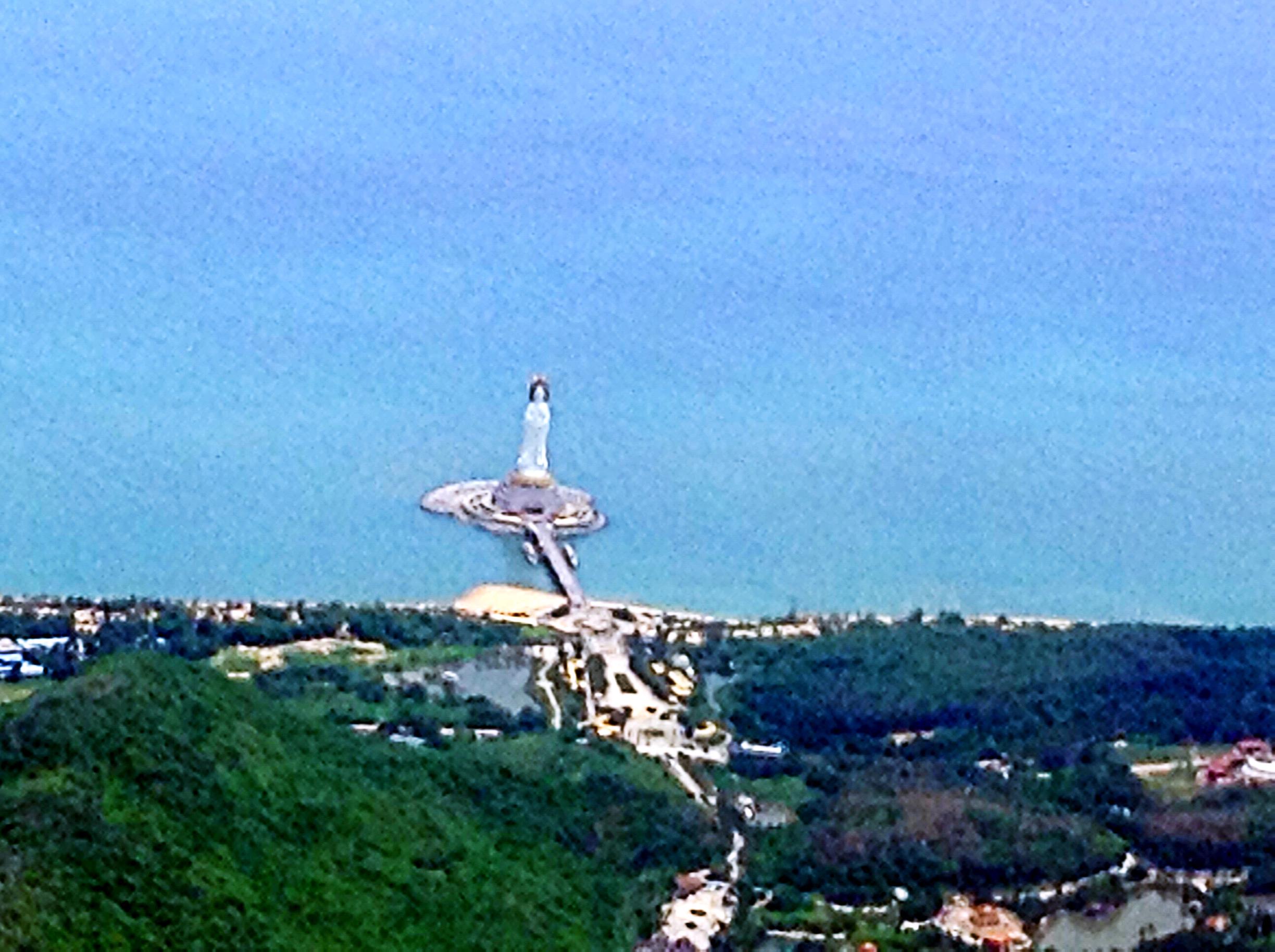 這是我們?cè)诳罩羞呏]拜邊拍攝的南海觀世音菩薩像,莊嚴(yán)慈祥。