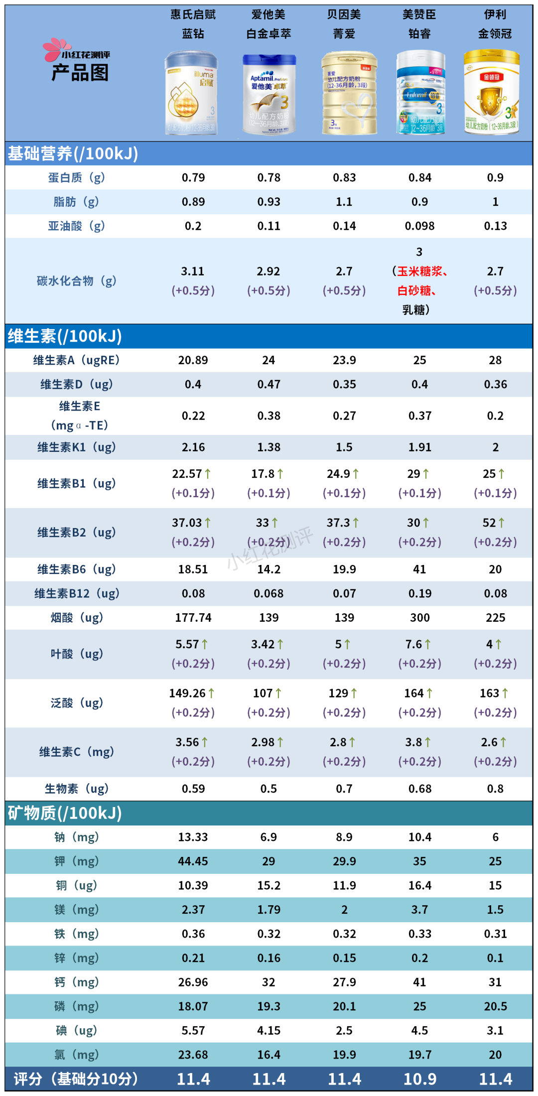 指標(biāo)主要由奶源奶基、基礎(chǔ)營(yíng)養(yǎng)成分、可選擇性營(yíng)養(yǎng)成分、其他配料、品牌信任度,五個(gè)部分組成,詳細(xì)評(píng)分準(zhǔn)則請(qǐng)點(diǎn)擊《二、三段奶粉評(píng)分準(zhǔn)則》查看。