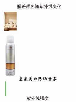 噴霧的瓶蓋采用高質(zhì)量的感光變色材料,能在不同場景中,智能檢測紫外線的強度,貼心提醒你什么時候防曬要加量。