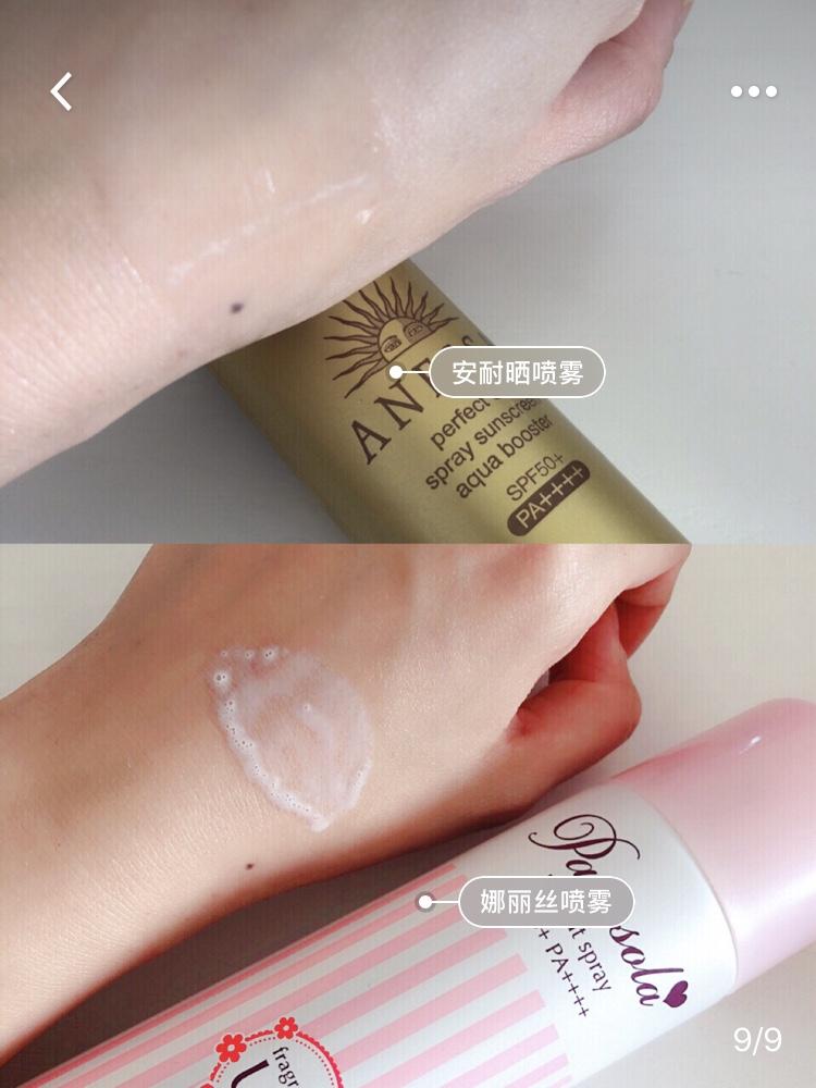 噴霧是酒阿姨夏季防曬必不可少的隨身品,走到哪里噴到哪里,很方便,這兩款噴霧防曬果都很棒,全身適用,安耐曬小巧一些,方便攜帶,娜麗絲水潤一些,噴上去有絲絲冷感,可以當降溫噴霧使用