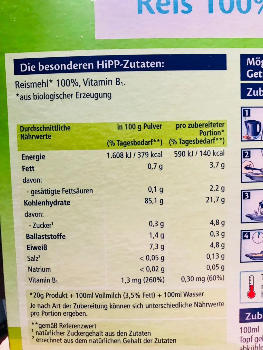 后再提醒一下大家,德國(guó)喜寶原味大米粉沒有經(jīng)過鐵強(qiáng)化!美國(guó)禧貝有機(jī)糙米米粉按推薦食用量鐵含量低!前者好配合其他含鐵輔食輪流吃,后者好根據(jù)實(shí)際情況加大每餐食用量。