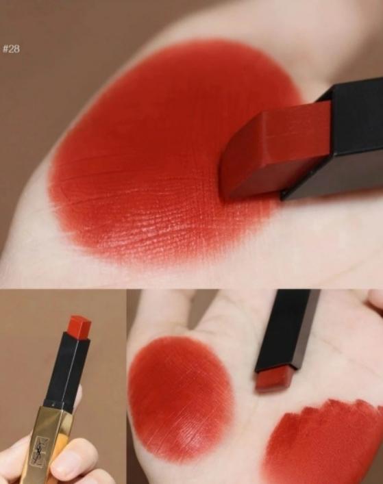 我常用的是28號(hào)色,真的巨顯白顯氣色,颯甜的胡蘿卜色,啞光+胡蘿卜磚紅。薄涂是減齡的元起色,厚涂炒雞洋氣,整個(gè)人都感覺(jué)提亮了幾度,一點(diǎn)都不挑膚色,特別是對(duì)像我這種比較“發(fā)黃”的小麥膚色友好,不會(huì)顯黑顯土的。
