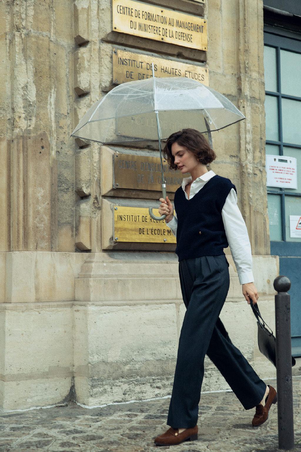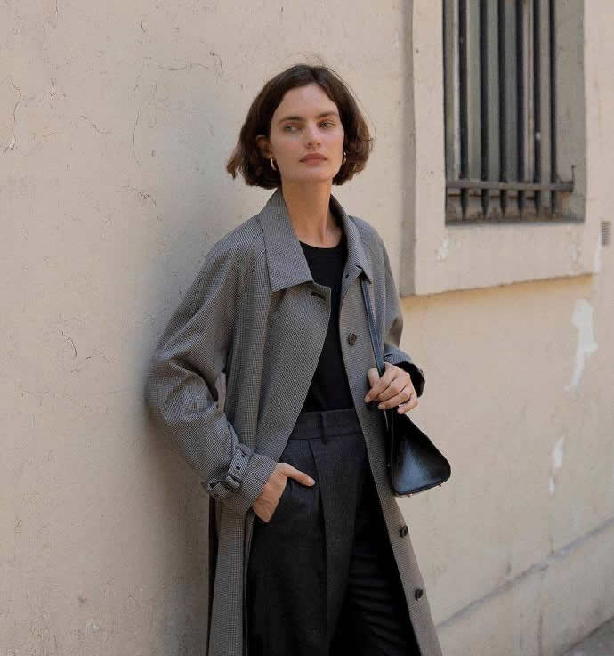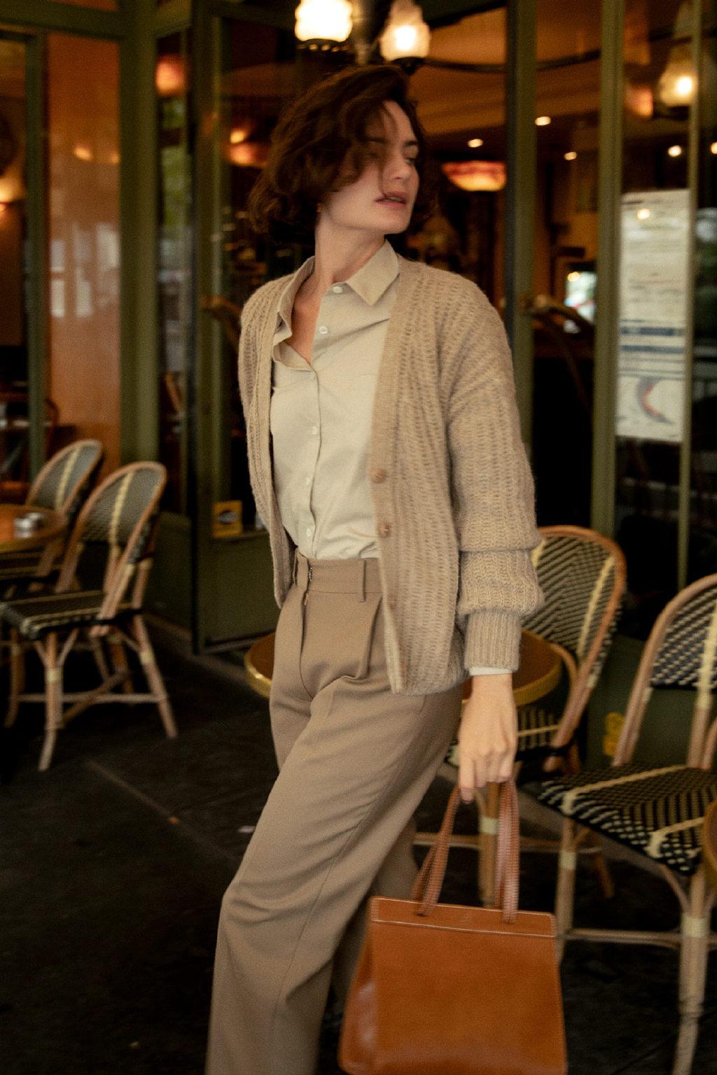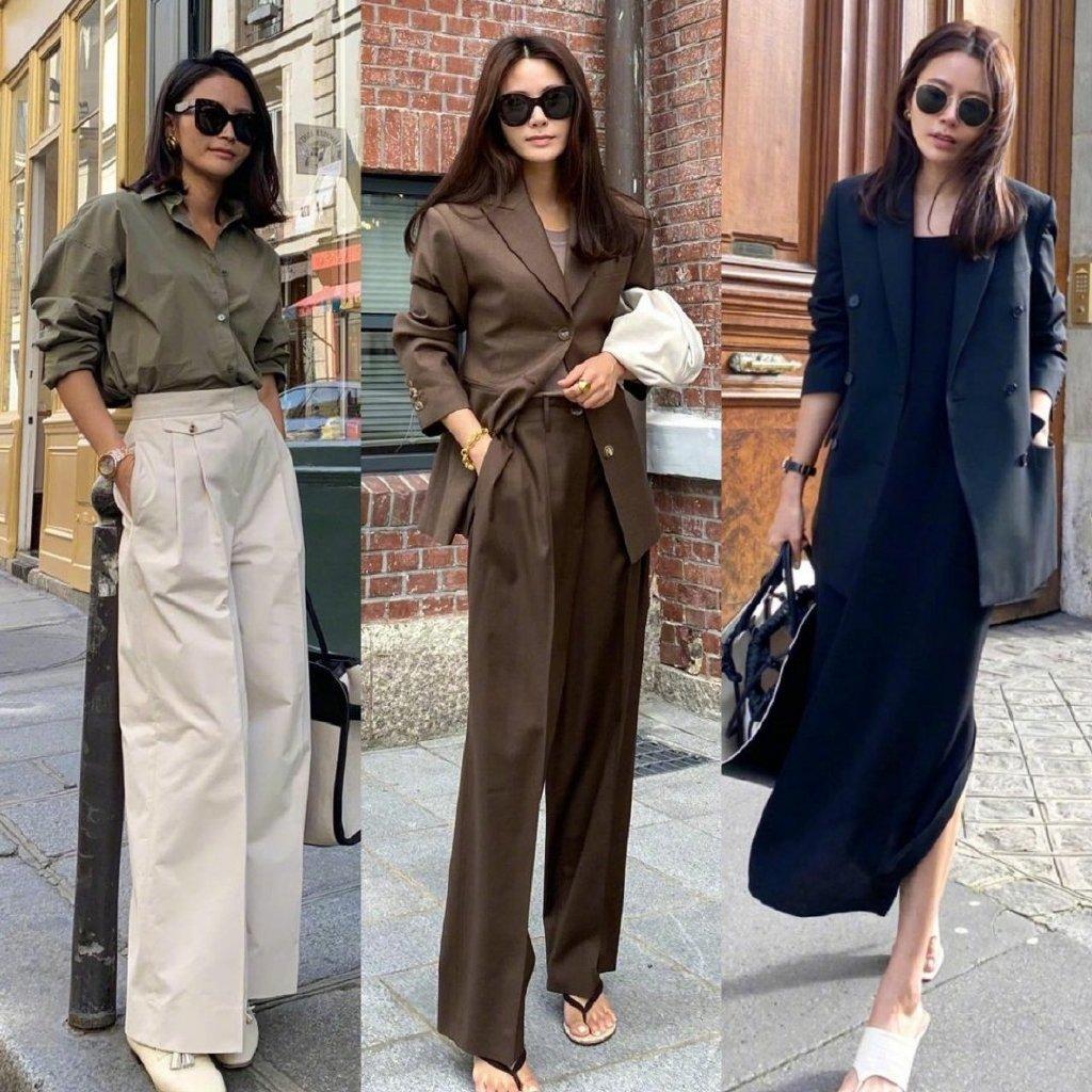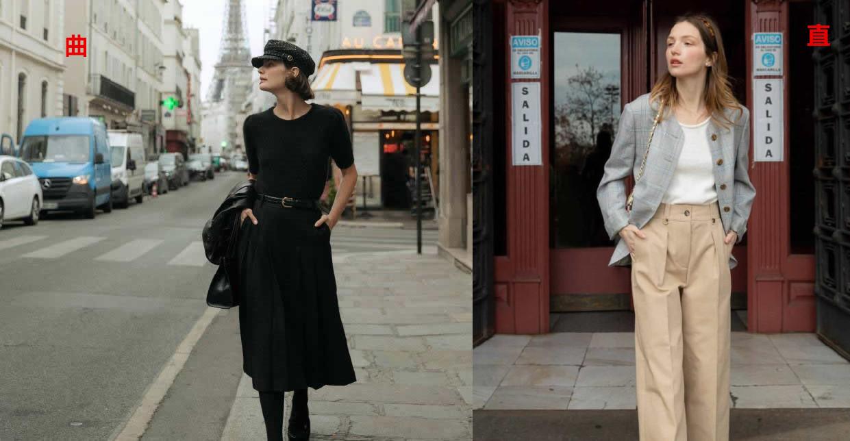 那么,問題來了:法式風(fēng)的中性色,與職場(chǎng)通勤風(fēng)的中性色有什么不同?答案是:直曲線條廓形的區(qū)別。