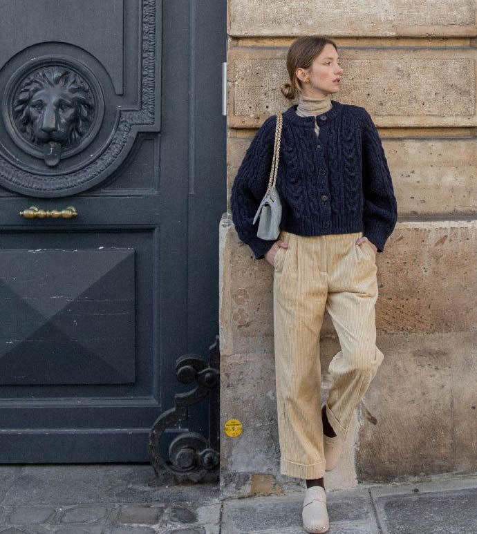 深藍(lán)襯衫搭配卡其褲,知性干練毫不猶豫。為了營(yíng)造逛街的隨意,來一款深藍(lán)針織衫疊穿吧,輕輕一披,就是大時(shí)髦啊。