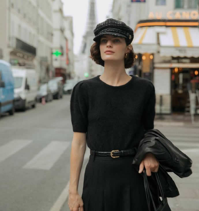 故意營(yíng)造領(lǐng)口處的隨意感,法式慵懶即是不經(jīng)意的時(shí)髦。
