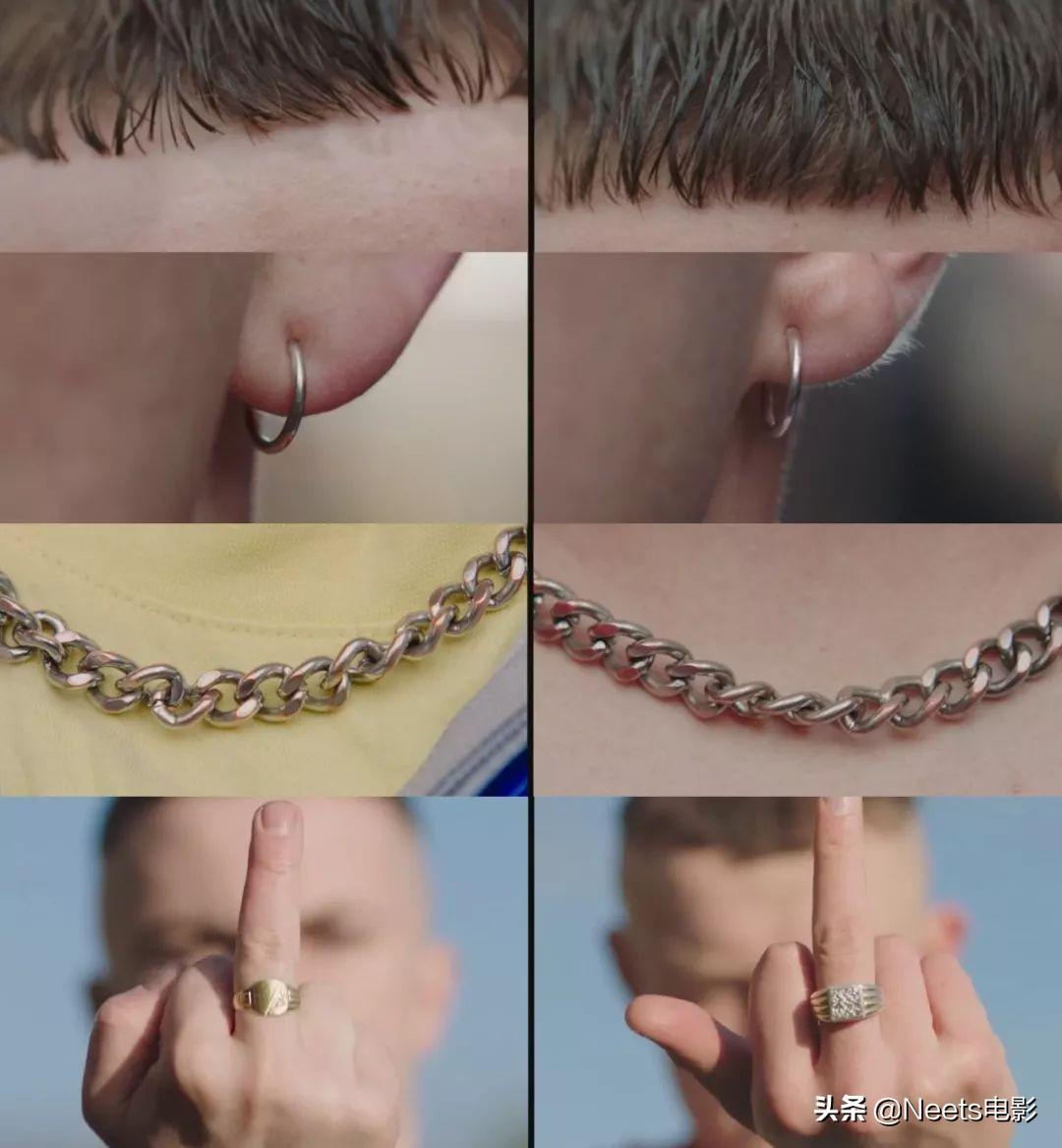 主人公康納、喬克是一對(duì)好基友,為了證明他倆基情比金堅(jiān),特意去剪了同款發(fā)型,買了同款耳釘,戴著同款戒指,胸口也是同款大金鏈子,不時(shí)還同步在胸口比劃一個(gè)郭富城。