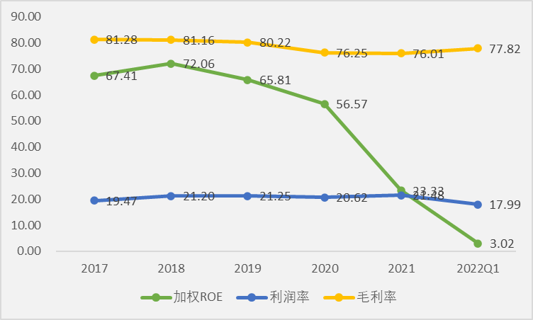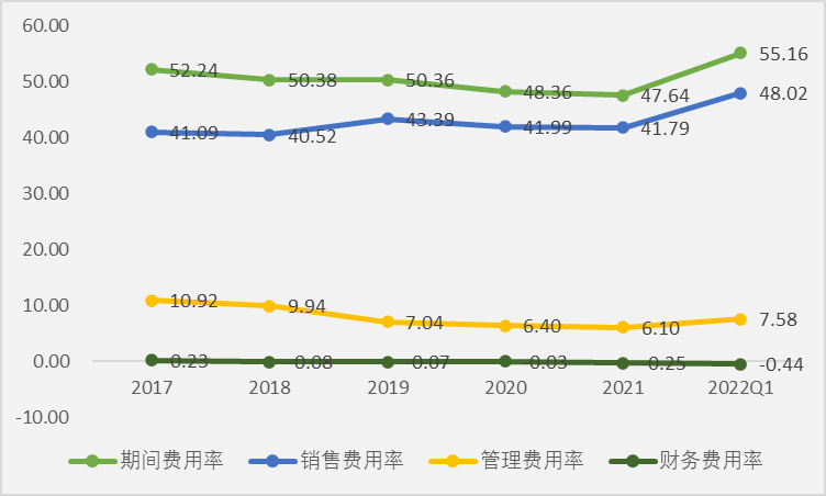 從杜邦分析拆解生意模型來(lái)看,貝泰妮屬于第一種生意模型——品牌。公司毛利率今年由81.28%回落至21年低點(diǎn)76.01%,22Q1略微回升至77.82%,預(yù)計(jì)公司未來(lái)毛利率保持平穩(wěn)。在品牌應(yīng)及規(guī)模應(yīng)逐漸凸顯下,公司銷售費(fèi)用率有望逐漸下降,從而帶動(dòng)公司利潤(rùn)率提高。