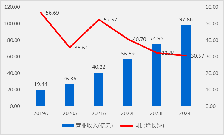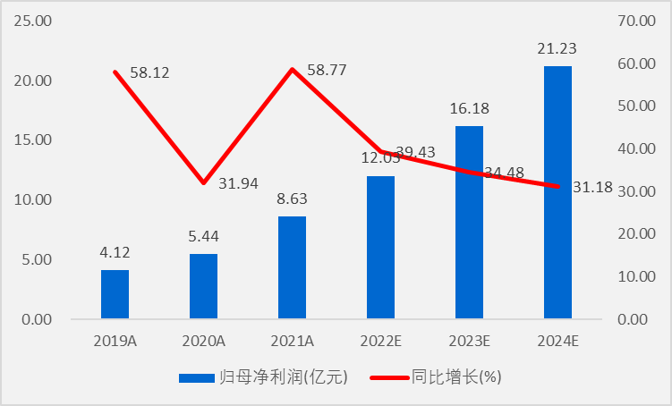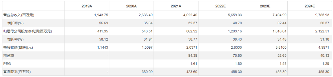 2021年公司實(shí)現(xiàn)營(yíng)收同比增長(zhǎng)52.58%至40.22億元,4年復(fù)合增長(zhǎng)率49.83%;實(shí)現(xiàn)歸母凈利潤(rùn)同比增長(zhǎng)58.64%至8.63億元,4年復(fù)合增長(zhǎng)率53.86%;實(shí)現(xiàn)扣非歸母凈利潤(rùn)同比增長(zhǎng)58.48%至8.13億元,4年復(fù)合增長(zhǎng)率53.35%;實(shí)現(xiàn)經(jīng)營(yíng)活動(dòng)現(xiàn)金流同比增長(zhǎng)167.52%至11.53億元,4年復(fù)合增長(zhǎng)率54.57%。