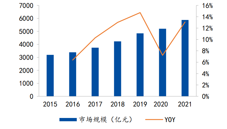 中國(guó)化妝品市場(chǎng)規(guī)模第二,高增速領(lǐng)先。受益于電商流量紅利和“顏值經(jīng)濟(jì)”催化消費(fèi)需求,近年來(lái)我國(guó)化妝品市場(chǎng)呈現(xiàn)快速增長(zhǎng)態(tài)勢(shì)。據(jù)Euromonitor 統(tǒng)計(jì),2021 年化妝品行業(yè)規(guī)模 5249 億美元,中國(guó)市場(chǎng)占比達(dá)到 16.79%,僅次于美國(guó)市場(chǎng)的 17.64%,為第二大化妝品市場(chǎng)。2015-2021 年我國(guó)化妝品市場(chǎng)規(guī)模 CAGR 為 10.74%,2021 年規(guī)模同比增長(zhǎng)13.08%達(dá)到 5879.4 億元;對(duì)比美國(guó)/韓國(guó)同期市場(chǎng) CAGR 2.01%/1.76%,中國(guó)市場(chǎng)規(guī)模增速遠(yuǎn)超海外成熟市場(chǎng)。