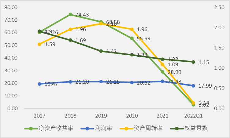公司資產(chǎn)周轉(zhuǎn)率19年創(chuàng)下高點(diǎn)2.10,21年由于IPO,導(dǎo)致資產(chǎn)規(guī)模大幅增長(zhǎng),資產(chǎn)周轉(zhuǎn)率快速下降,預(yù)計(jì)未來(lái)公司資產(chǎn)周轉(zhuǎn)率有望提高。