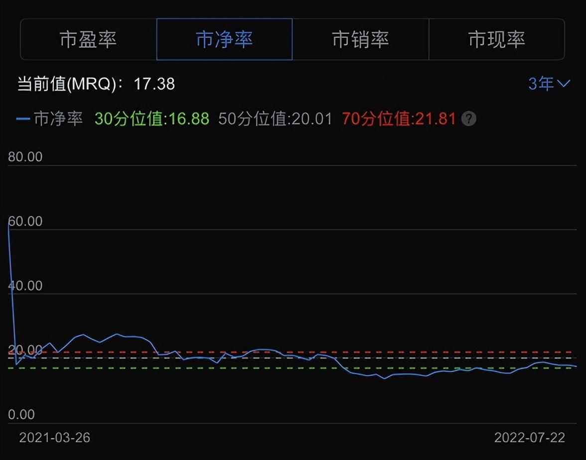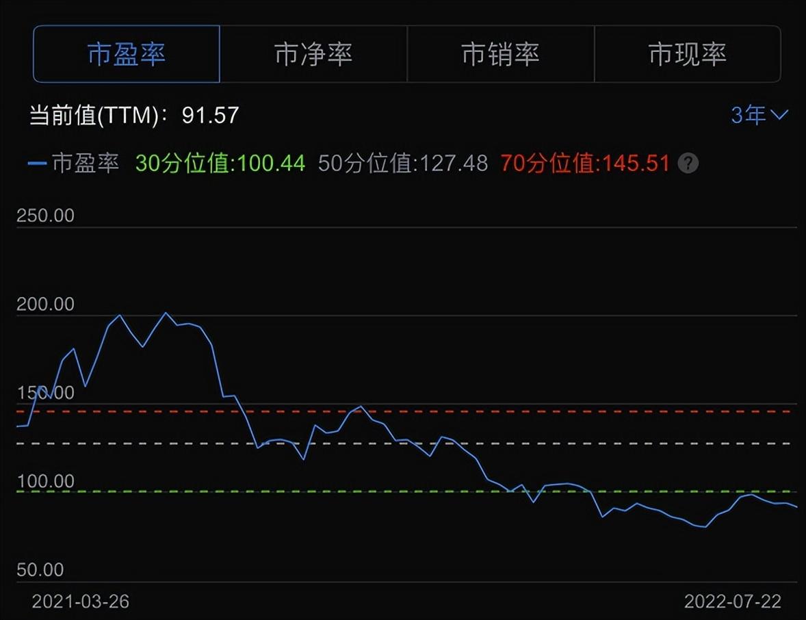 PE-TTM 91.57,位于上市以來(lái)低位;PB 17.38,位于上市以來(lái)低位,低PE低PB組合(相對(duì))。