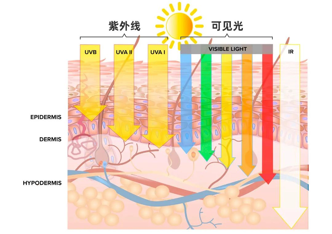 這其實是因為目前大多數(shù)防曬霜,都是在紫外線波段起到防護作用,而忽略了可見光,尤其是靠近紫外線波段的藍光。