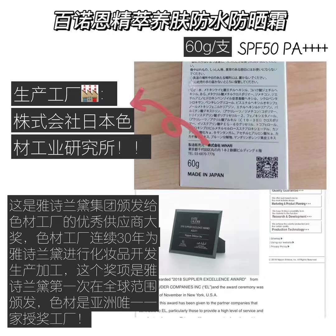 這款防曬霜,生產(chǎn)工廠:株式會(huì)社日本色材工業(yè)研究所??屬于日本防曬方面的工廠、擁有專利多。常年加工的品牌有資生堂