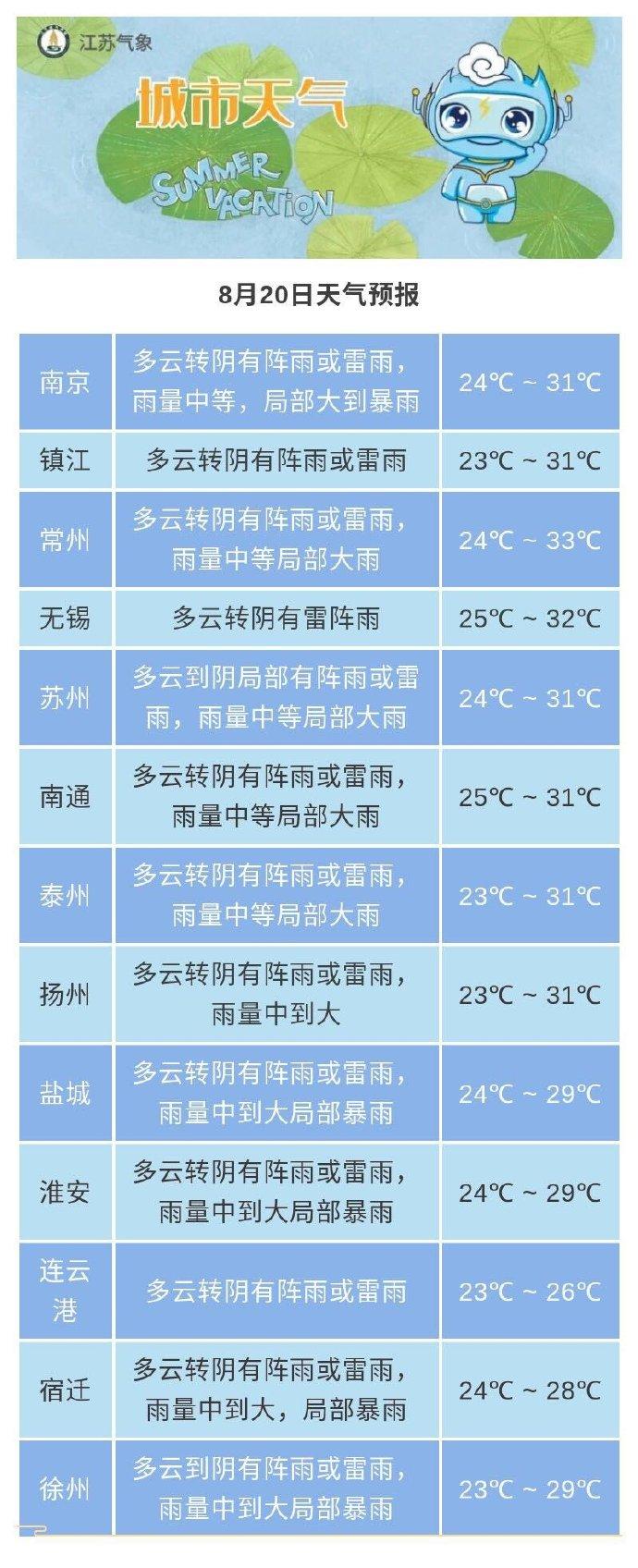 早晨是幸福的,既有淡淡的陽光,又有一絲清涼。一早,全省大部分地區(qū)氣溫都在23℃左右,還算涼爽。不過蘇州地區(qū)普遍在26℃左右,稍微有些悶熱。中午,全省高氣溫在33℃左右,南通蘇州附近地區(qū)有小片對流云團(tuán)出沒,溫度略低,在30℃以下,今天該地區(qū)下班的小伙伴還是記得帶把傘。 今天是40天加長版三伏天的后一天,末伏結(jié)束,“秋老虎”也要正式出沒了。秋老虎,在氣象學(xué)上是指三伏出伏以后短期回?zé)岷蟮?5℃以上的天氣。形成秋老虎的原因是控制我國的西太平洋副熱帶高壓秋季逐步南移,但又向北抬,在該高壓控制下晴朗少云,日照強(qiáng)烈,氣溫回升。秋老虎的天氣特征是早晚清涼、午后高溫暴曬?!扒锢匣ⅰ碧鞖?,雖然氣溫較高,但總的來說空氣干燥,陽光充足,早晚不是很熱,不至于熱得喘不過氣來。 隨著這兩天天氣不錯,不過好天氣又要按下暫停鍵了,隨著副高增強(qiáng)北抬,20號全省將會有一次的雷陣雨過程,其中沿淮和淮北地區(qū)是大到暴雨,連云港局部大暴雨,其他地區(qū)有小到中雨,局部大雨。